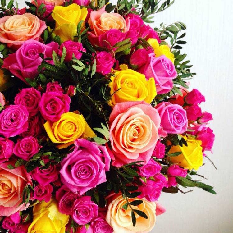 Яркий букет из одноголовых и кустовых роз подарит положительные эмоции и заряд позитивной энергией. Желтые розы на языке цветов означают улыбку, радость и веселье, а розовые – искренность и надежду на развитие, успешность отношений. Писташ добавлена для органичности композиции, что получилось, букет смотрится впечатляюще, подходит любимой женщине и членам семьи.