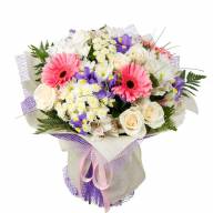 Воздушный букет, собранный из роз, крупных гербер, ирисов и хризантем – это воплощение искренних пожеланий и самых нежных чувств. Такой цветочный микс наделен позитивной аурой и способен подарить близкому человеку радость и прекрасное настроение. Каждый их цветков в букете имеет свою символику, но сочетаясь, они обретают особую ценность, так как вместе выглядят более оригинально и привлекают к себе внимание.